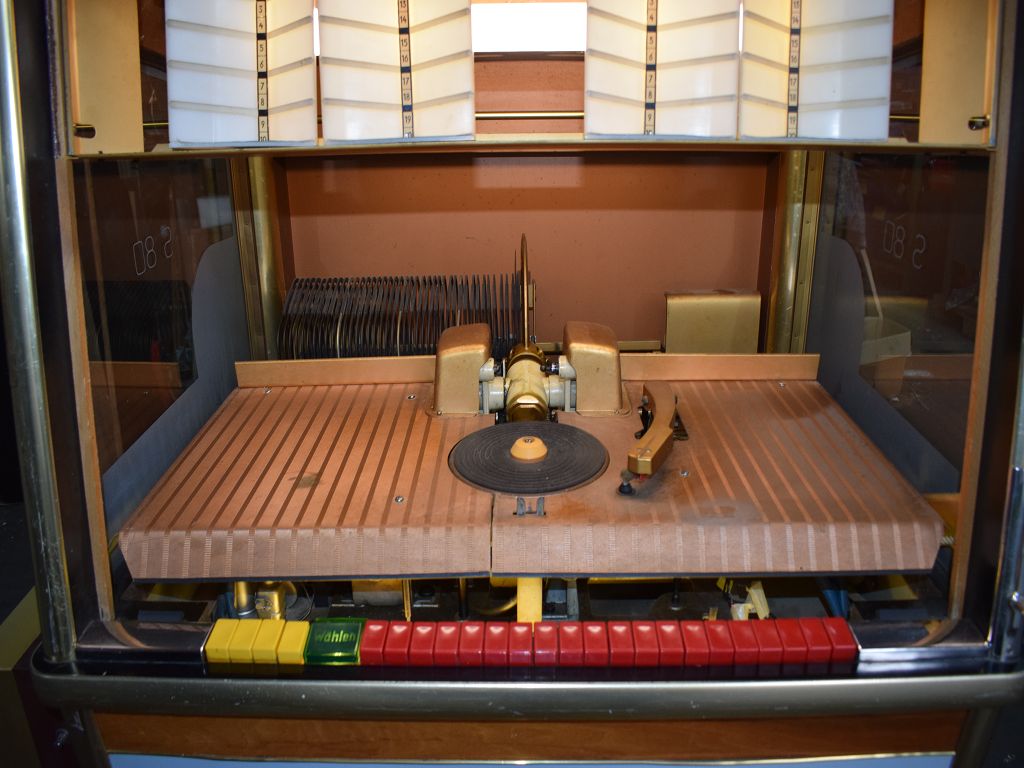 Die Musikbox funktioniert mit Freispieltaste und ist komplett bestückt mit 50 Singles.
